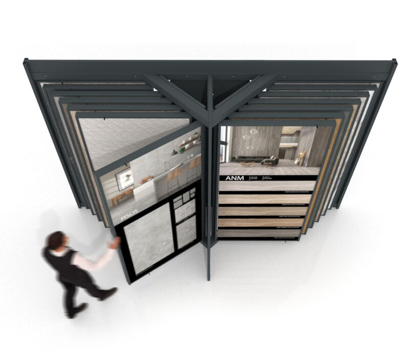 Kệ gạch cánh lật là thiết kế trưng bày gạch thông minh dành cho các showroom, cửa hàng bán gạch. Thiết kế giống như một cuốn sách, mỗi cánh bao gồm nhiều mẫu gạch khác nhau, có thể lật thông minh giúp cho khách hàng dễ dàng lựa chọn hơn.