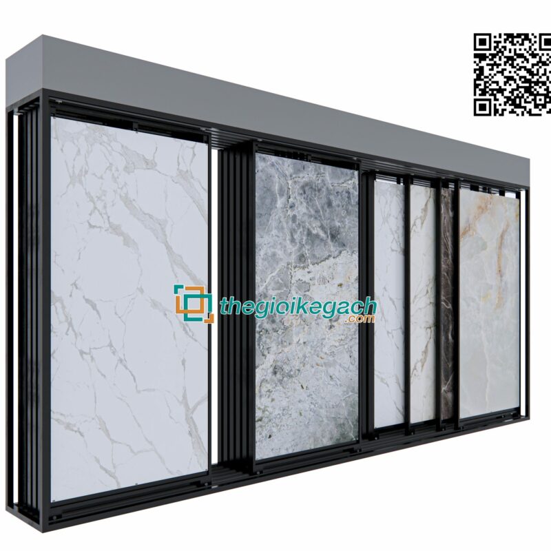 Kệ trưng bày gạch cánh lùa CNC đáp ứng được nhiều mẫu gạch có kích thước khác nhau và giúp cho khách hàng quan sát sản phẩm mẫu được trực quan và dễ dàng hơn.