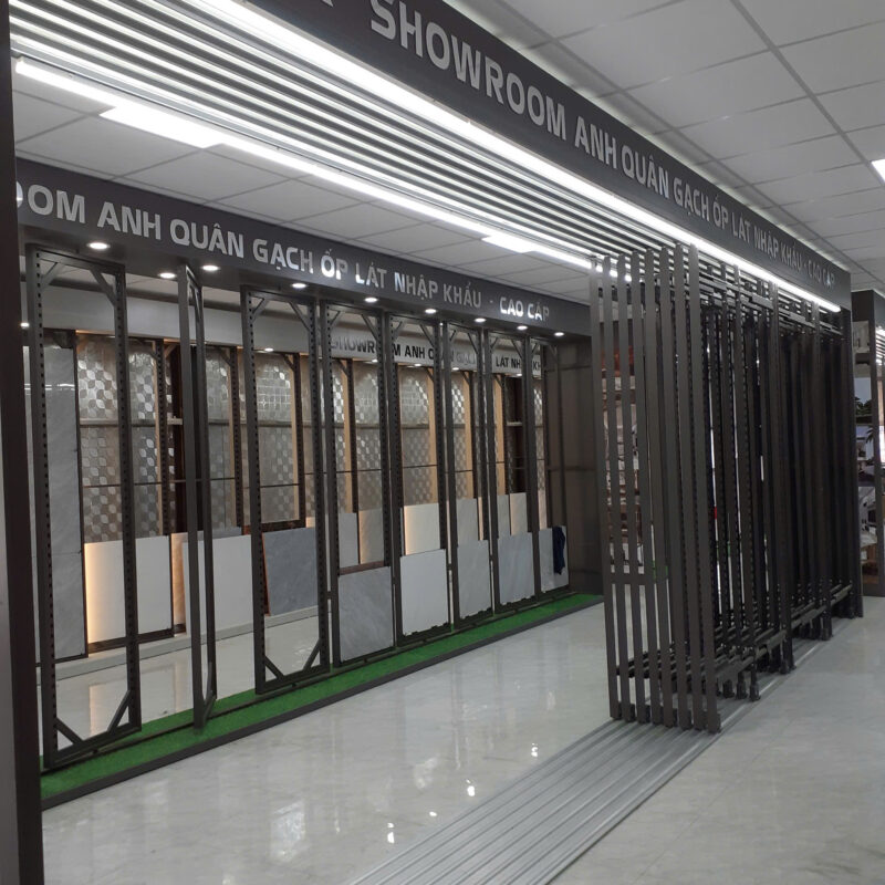 Kệ trưng bày gạch cánh lùa đáp ứng được nhiều mẫu gạch có kích thước khác nhau và giúp cho khách hàng quan sát sản phẩm mẫu được trực quan và dễ dàng hơn.