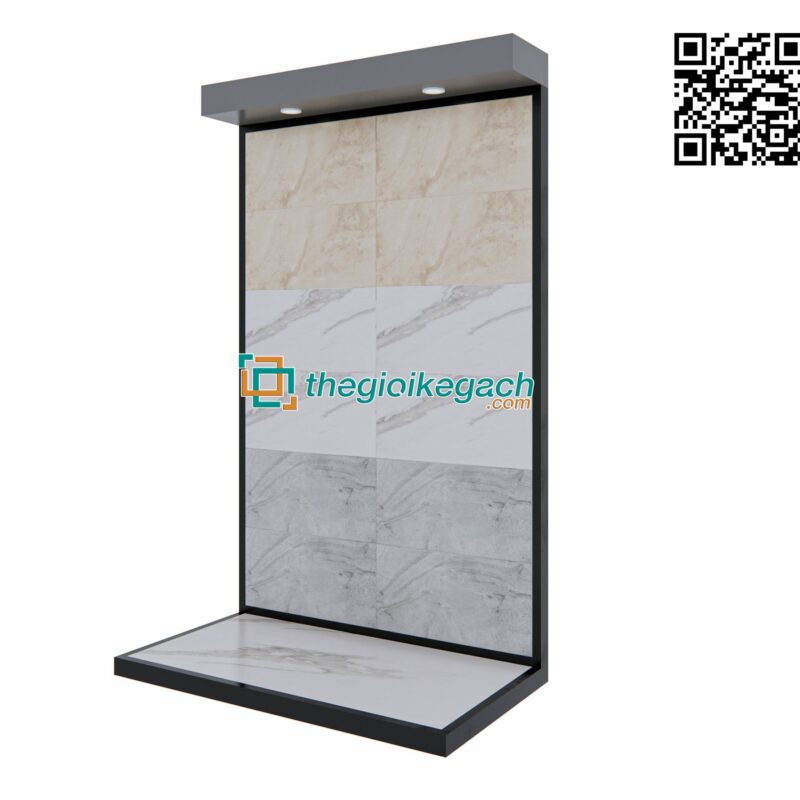 Kệ gạch trưng bày chữ L phù hợp với nhiều kích thước gạch men, ốp lát khác nhau.
