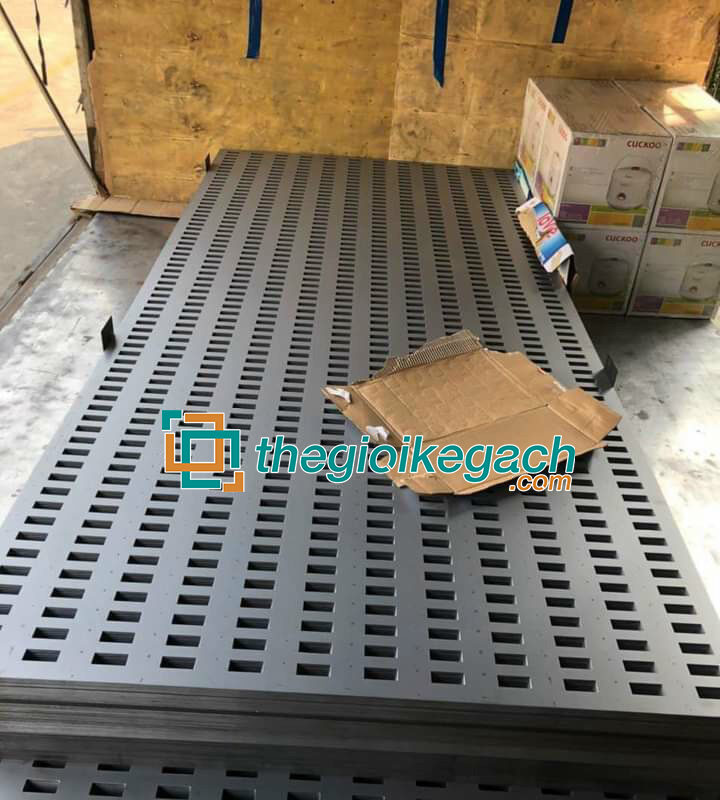Tôn tấm đục lỗ CNC – Vật tư không thể thiếu trong ngành kệ gạch. Ứng dụng phong phú đa dạng, tạo ra nhiều mẫu kệ hiện đại tiện lợi trong trưng bày gạch. Tôn tấm cnc đa dạng về kích thước và mầu sắc. Có độ dày tôn từ 1.0mm đến 1.2mm tôn tấm CNC có thể đáp ứng mọi yêu cầu về độ cứng vững trong thi công kệ và chịu tải. Các kích thước tôn phổ biến: 1.22x 2.5m, 1.22×2.65m, 1.22x3m, 1.22×3.3m…