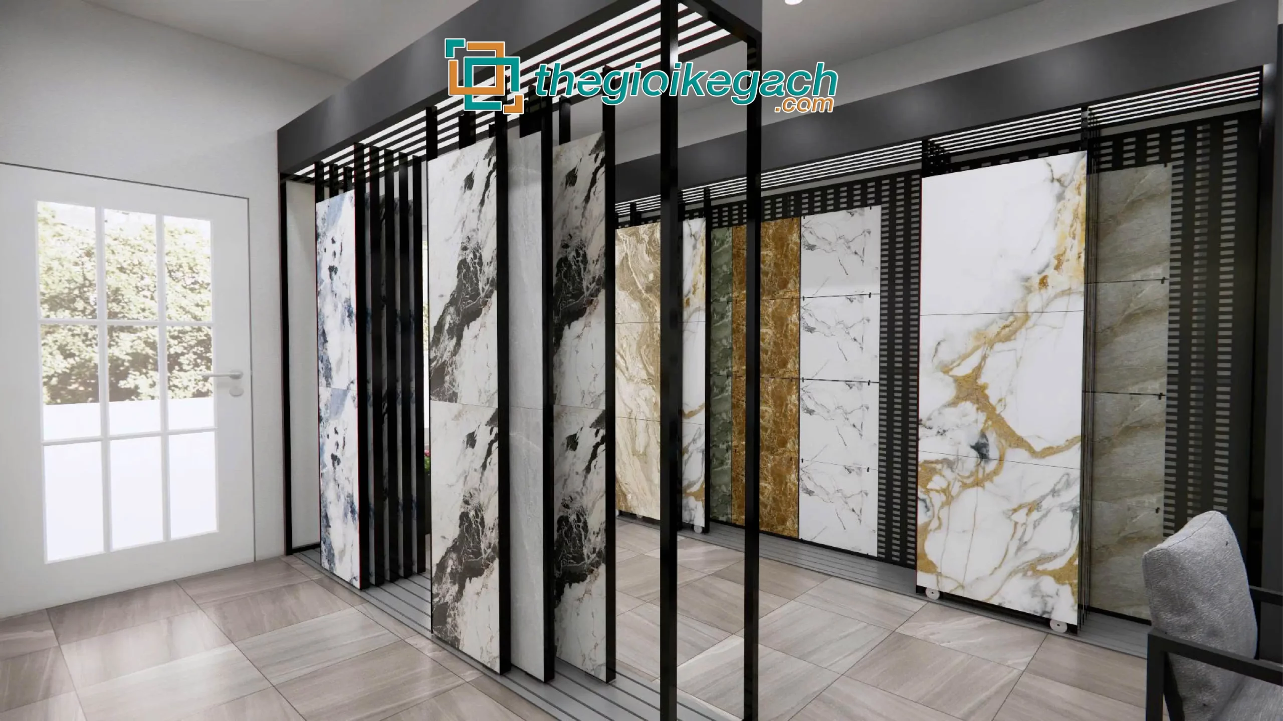 Kệ trưng bày gạch lát sàn, ốp tường, slab khổ lớn.